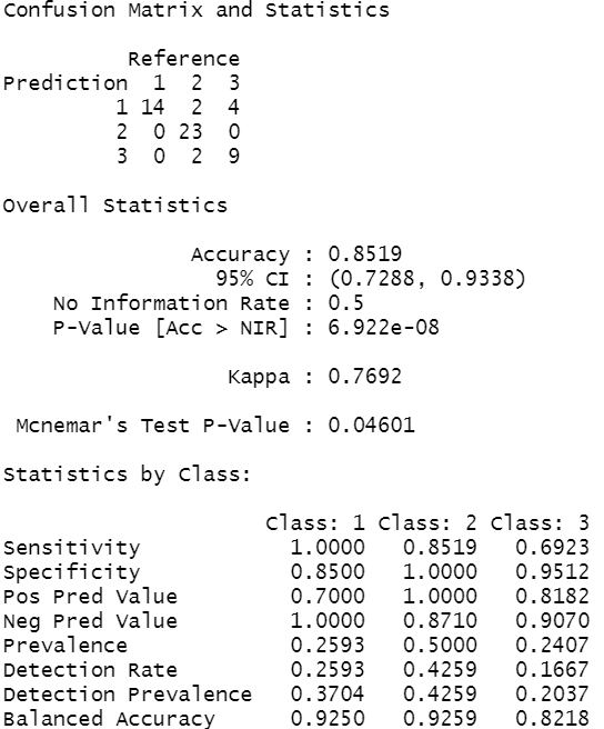 → Accuracy : 0.8519, Kappa : 0.7692
