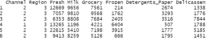 df <- read.csv('Wholesale customers data.csv', stringsAsFactors = F, header = T)