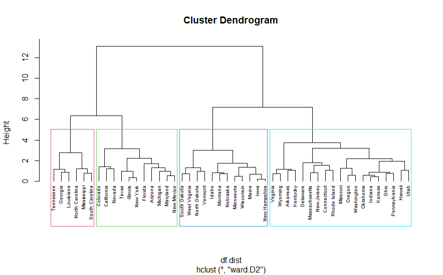 df.clusters <- cutree(df.hclust.ward, k = 4)