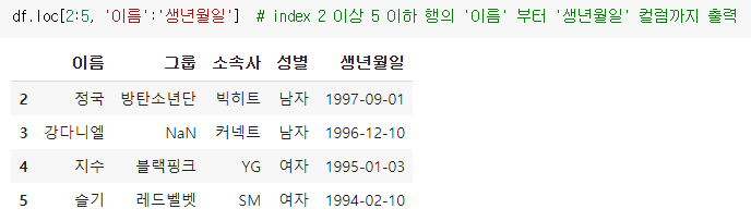 ② 복수의 컬럼 선택 : df[['컬럼명1', '컬럼명2', '컬럼명3']]