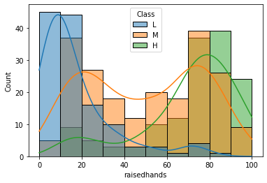 - raisedhands: 학생이 수업 중 손을 든 횟수