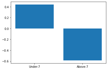 결석 횟수가 7회를 넘지 않는 학생이 넘는 학생보다 평균 성적 등급이 높다.