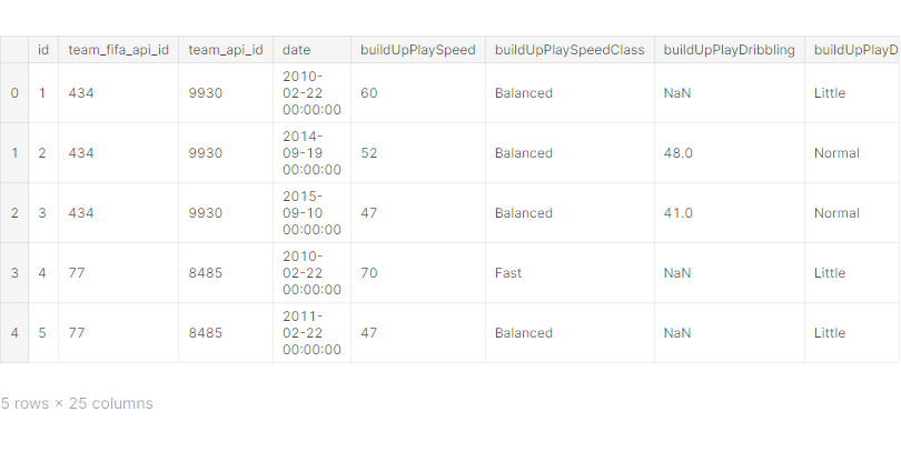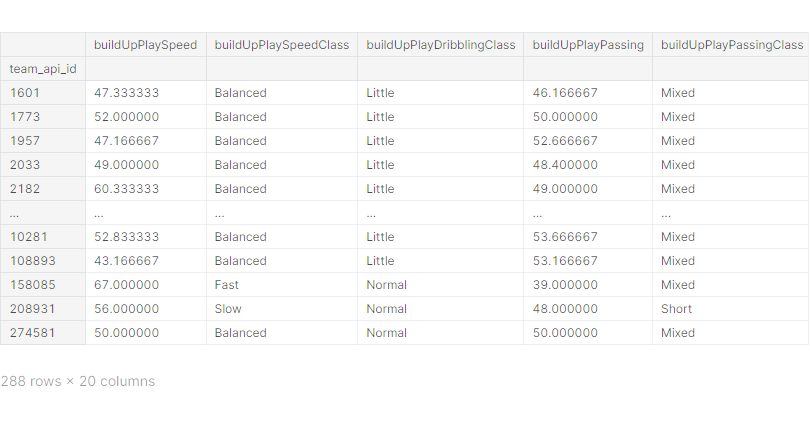 df_team_att = pd.read_sql_query('SELECT * from Team_Attributes', conn)