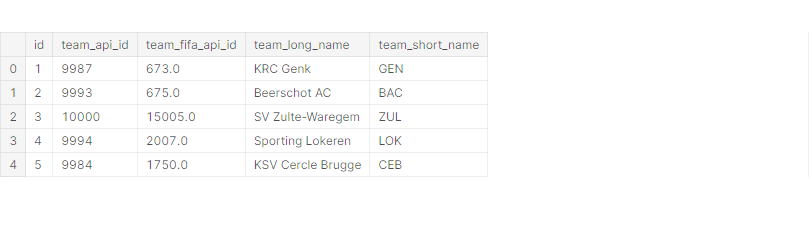 df_team = pd.read_sql_query('SELECT * from Team', conn)