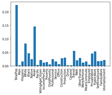 TotalPop 피쳐 중요도가 가장 높다.