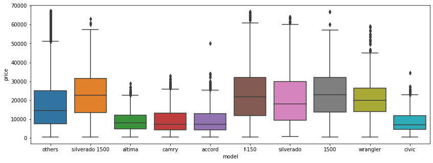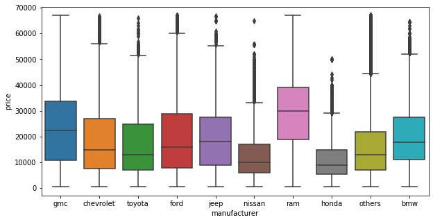 ram 에서 생산한 자동차의 가격이 대체적으로 높은 편이다.