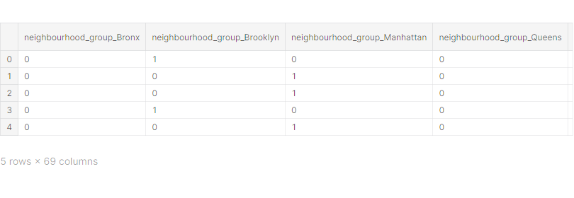X_cat = df[['neighbourhood_group', 'neighbourhood', 'room_type', 'is_avail_zero', 'review_exists']]