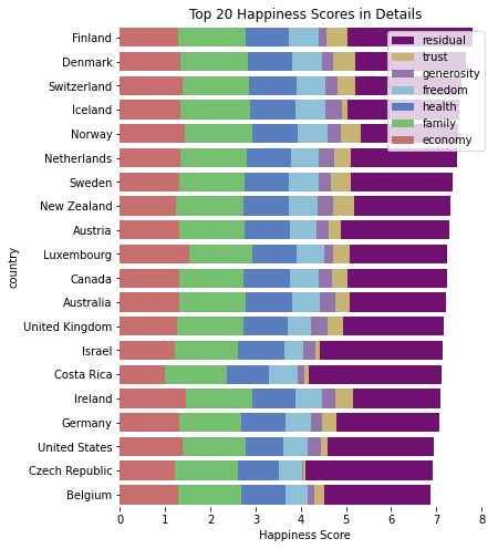 plt.title('Top 20 Happiness Scores in Details')