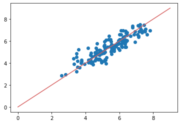 1. 실제 값과 추측 값의 Scatter plot 시각화