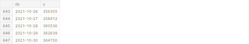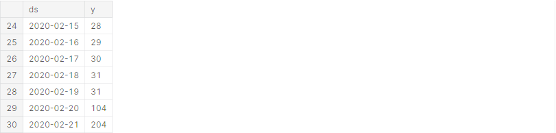 df = pd.DataFrame(df_case.reset_index()[['Date', 'Korea, South']].to_numpy(), columns=['ds', 'y'])