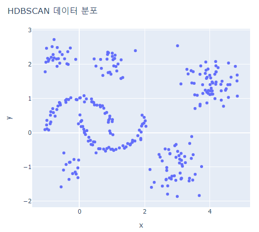 fig.update_layout(width=600, height=500, title='HDBSCAN 데이터 분포')