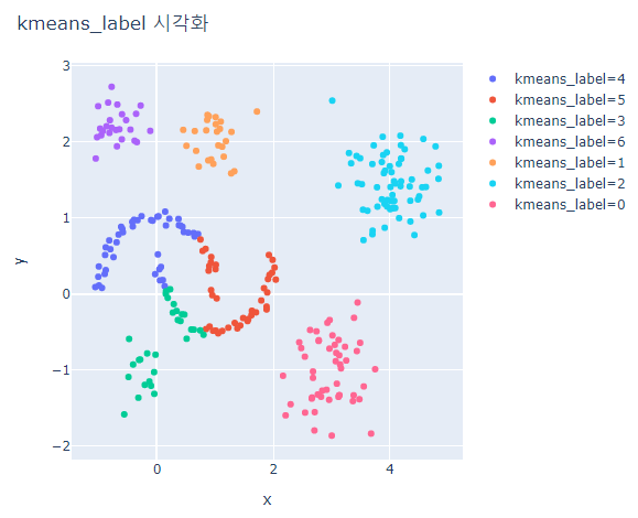 K-means는 달 모형은 제대로 분류하지 못하지만 구 형태의 모형은 잘 분류한다.