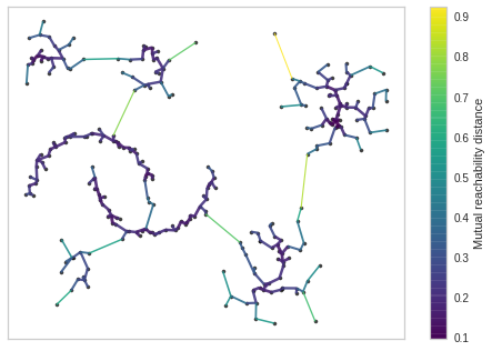 - 각 point를 이어주는 line의 distance를 점수화한 mutual reachabillity를 사용하여 나타낸 그래프