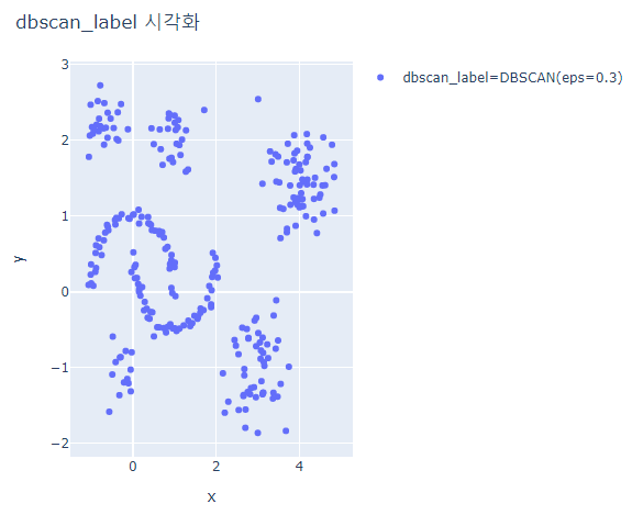 DBSCAN은 모두 하나의 cluster로 분류되었다.