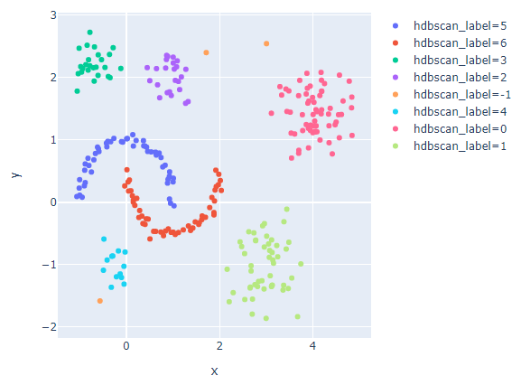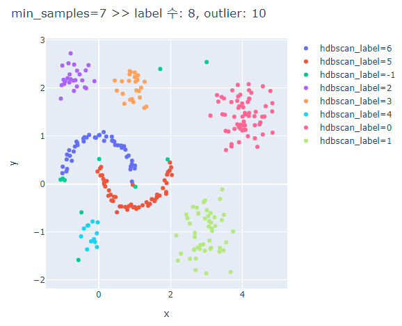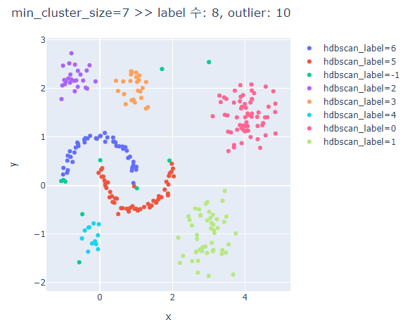 set(hdbscan_label) # {-1, 0, 1, 2, 3, 4, 5, 6}