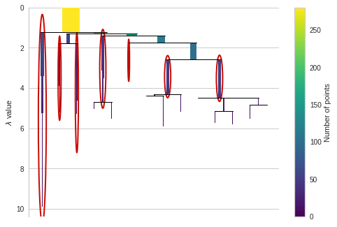hdbscan_model.condensed_tree_.plot(select_clusters=True)