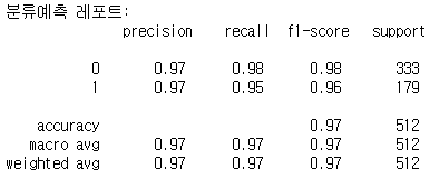 print("분류예측 레포트:\n", cfreport_train)