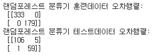 print("랜덤포레스트 분류기 테스트데이터 오차행렬:\n", rnd_confusion_test)