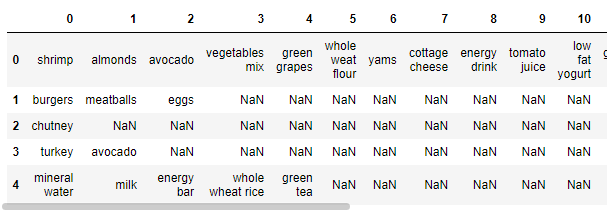 data = pd.read_csv('Market_Basket.csv', header = None)