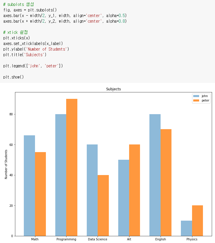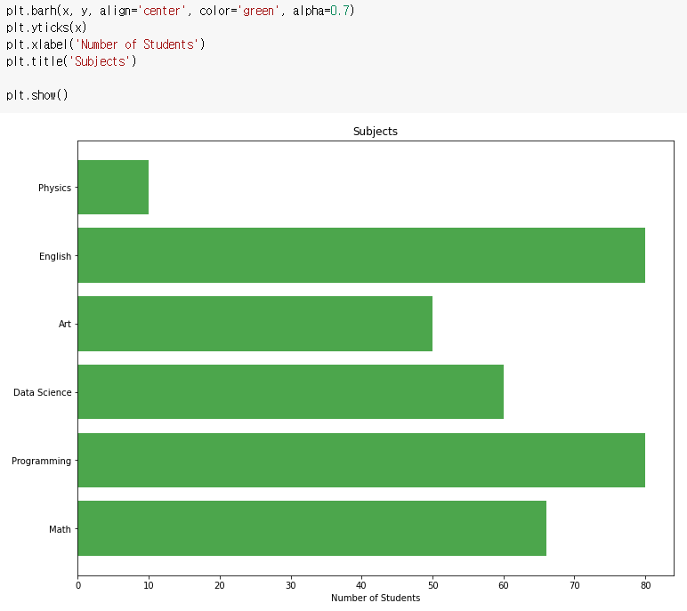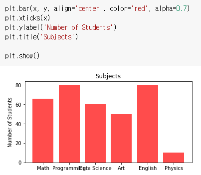 x_label = ['Math', 'Programming', 'Data Science', 'Art', 'English', 'Physics']