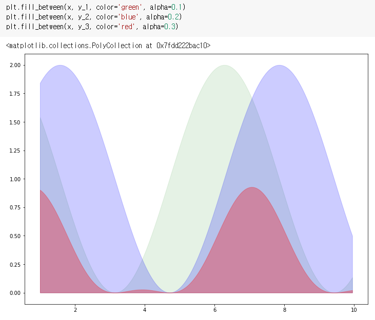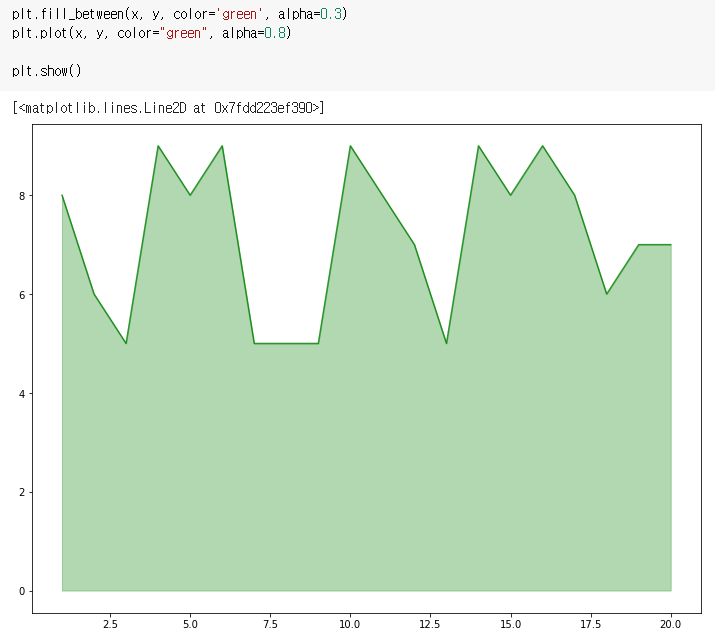 fill_between으로 색칠하기 ⇒ 경계선은 굵게, area는 옅게 그리는 효과 적용