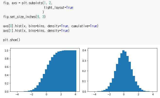 cumulative=True: 누적분포 표기
