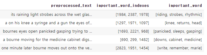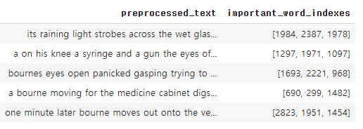 df['important_word_indexes'] = pd.Series(top_3_word.tolist())