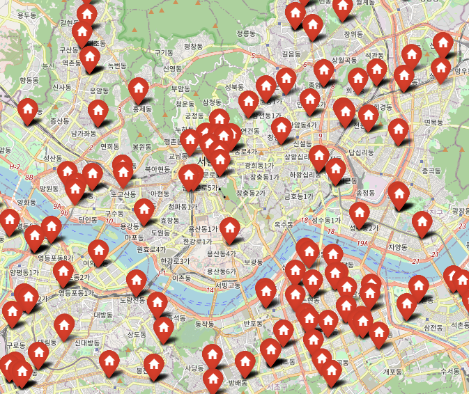 - icon = folium.Icon(icon) : 마커 모양